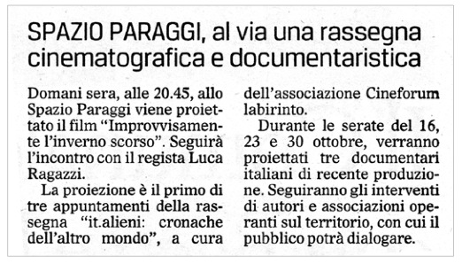 Venerdì 16 ottobre 2009 / ore 20:45 / Spazio Paraggi