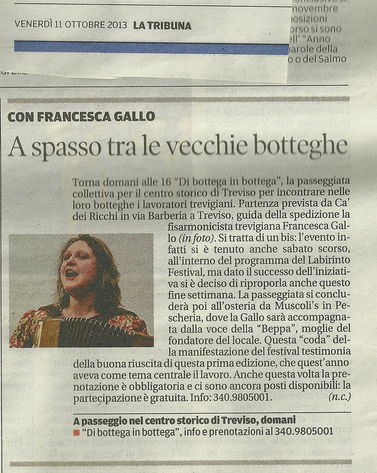 - A spasso tra le vecchie botteghe – La Tribuna 11/10/2013