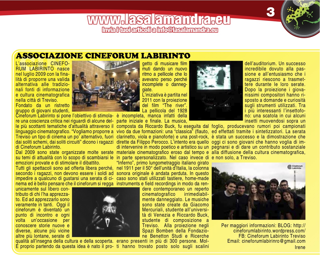- Associazione Cineforum Labirinto – La Salamandra n°38 di aprile/maggio 2012